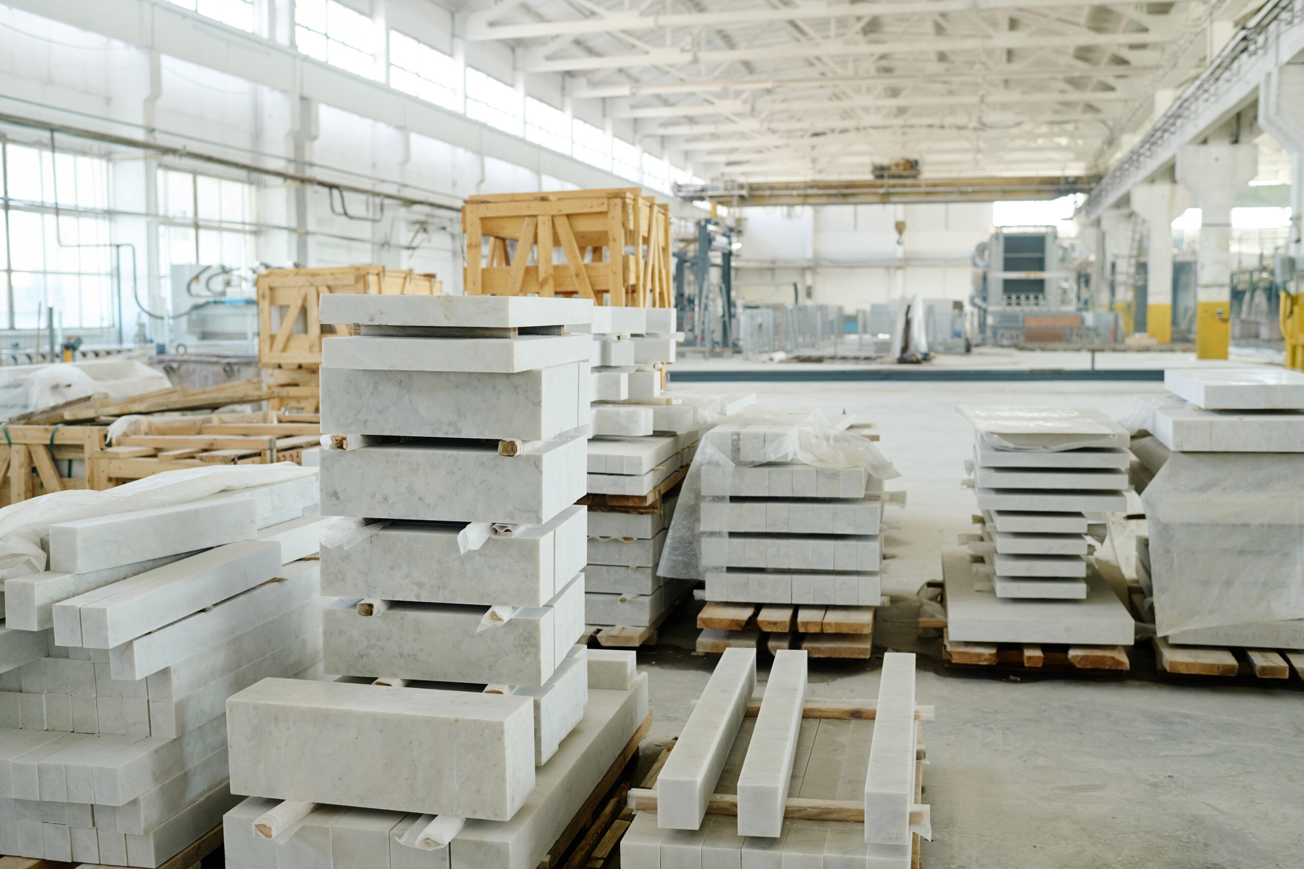 Cutted polished marble ready for use putting on pallet in warehouse